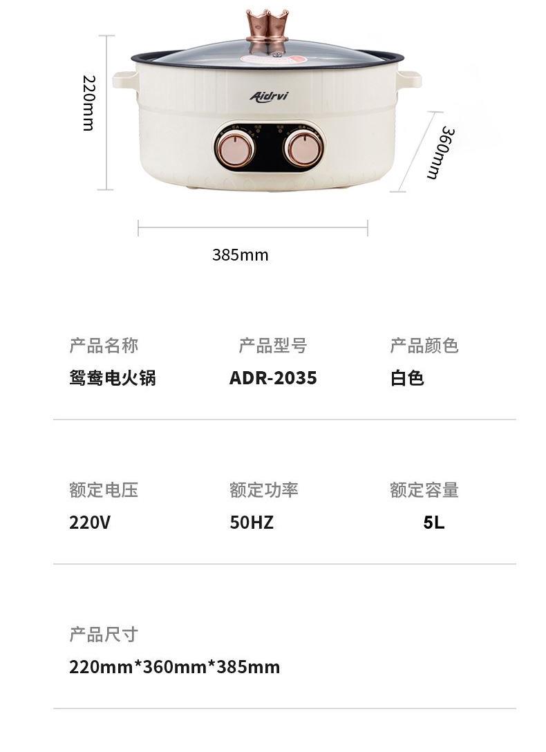 艾得銳威Aidrvi-雙拼鴛鴦電火鍋ADR-2035
